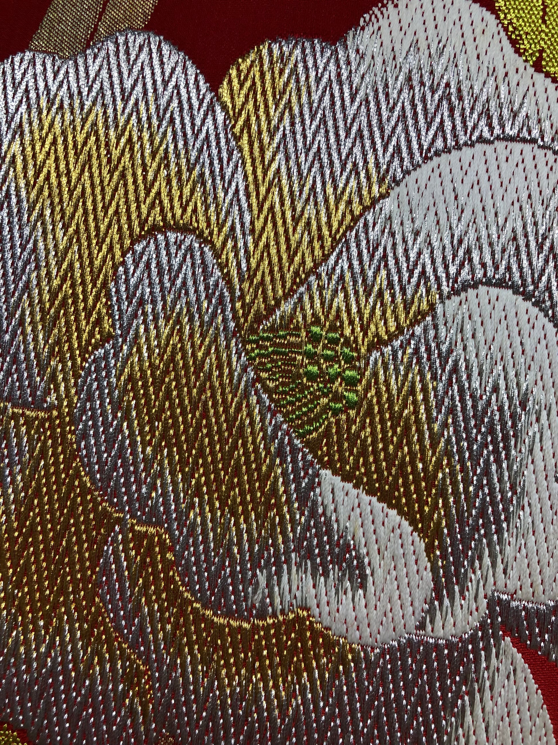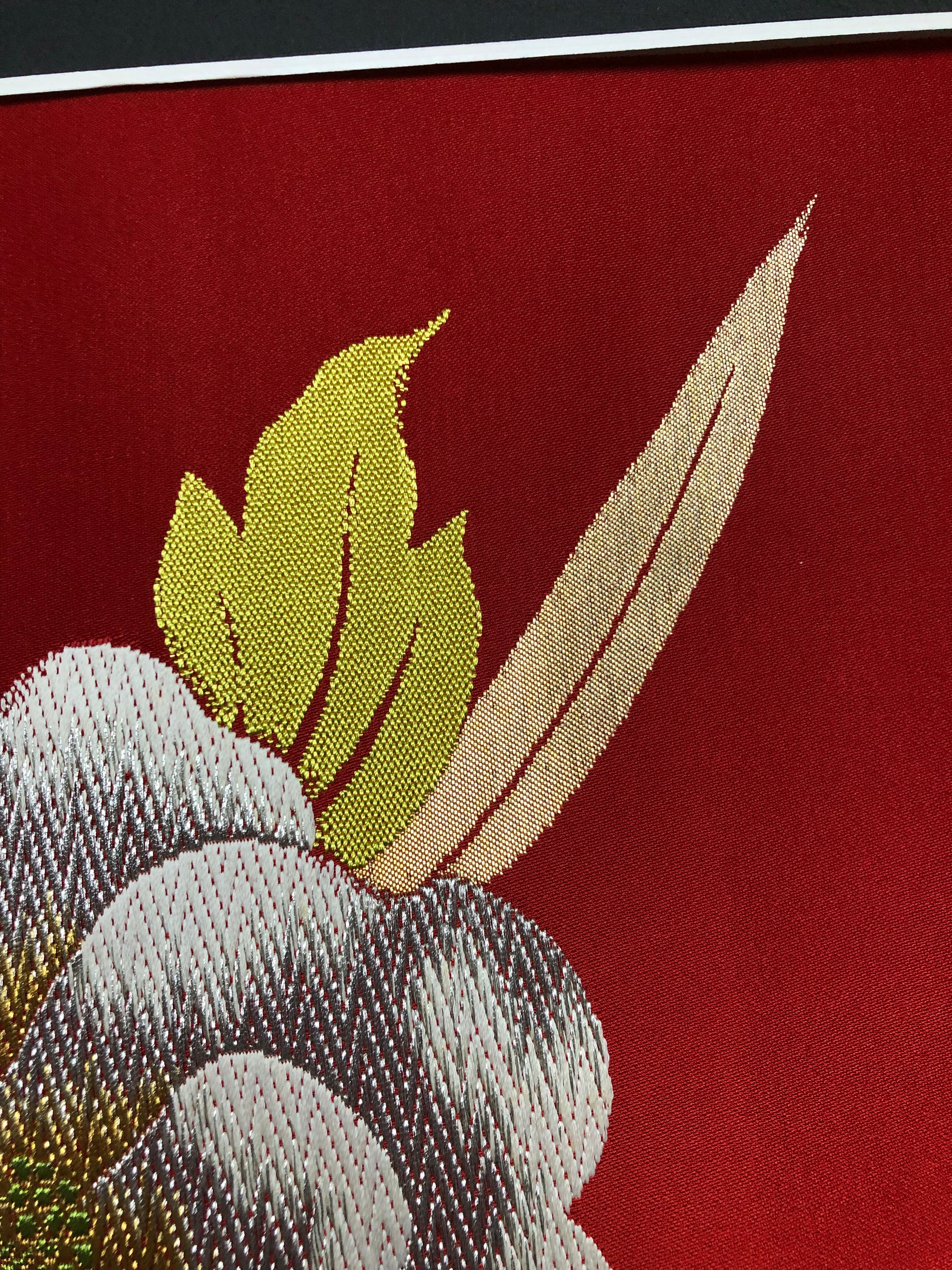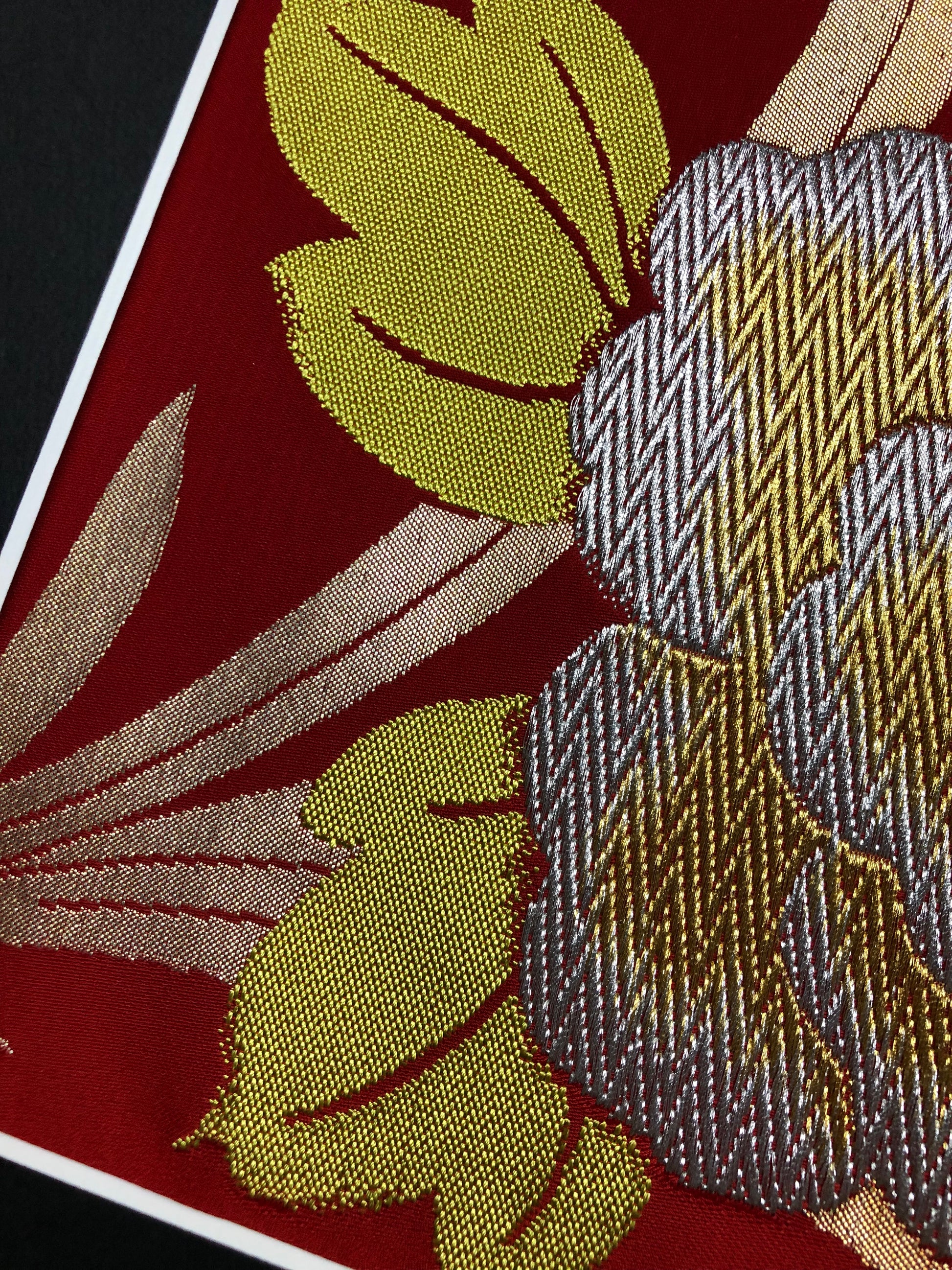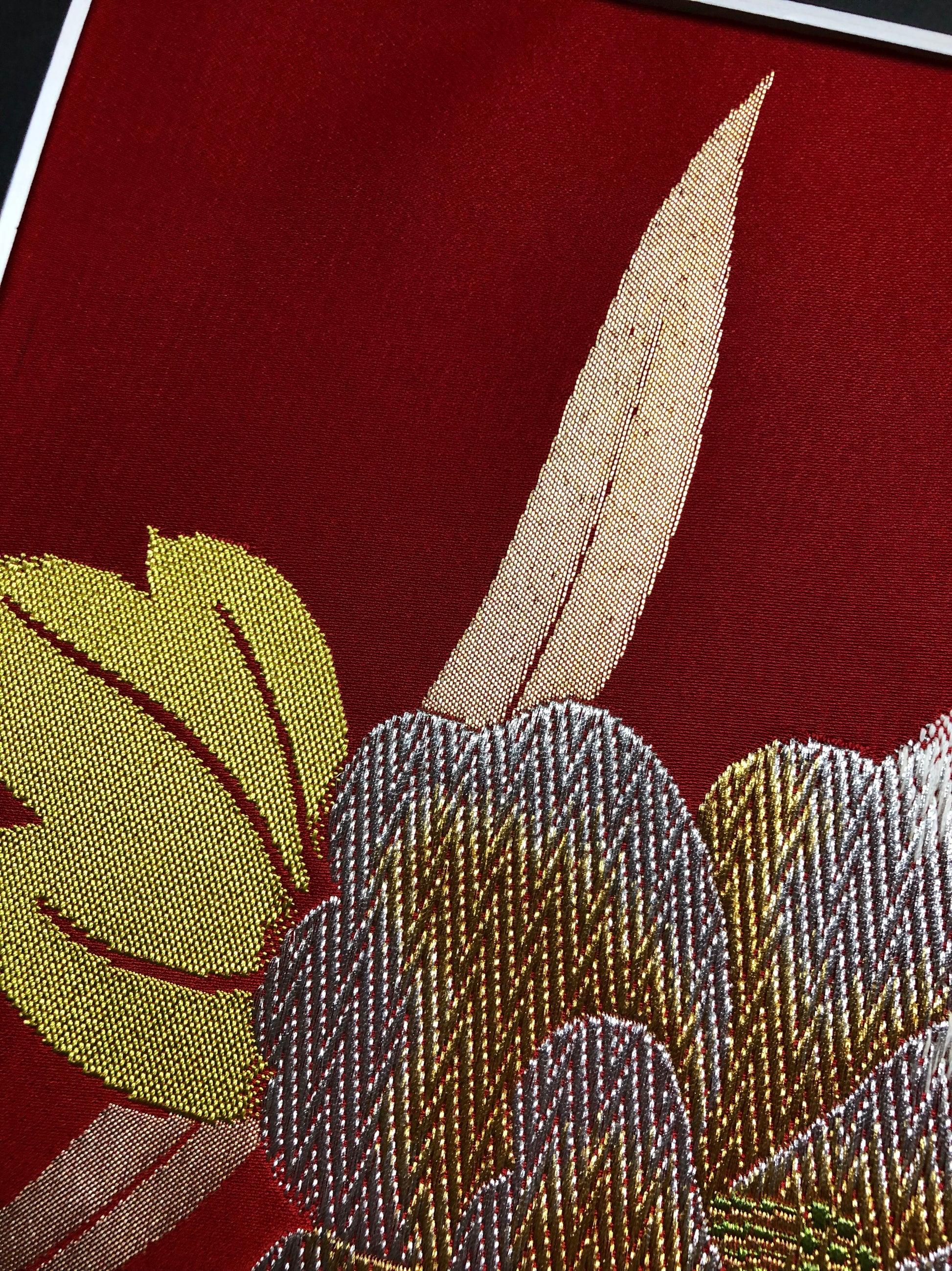 This exquisite creation is born from the transformation of traditional kimono obi. Japanese kimonos are painstakingly crafted by skilled artisans through an intricate process. With great reverence for the beauty of the obi, we have brought it back to life as Kimono Art.
