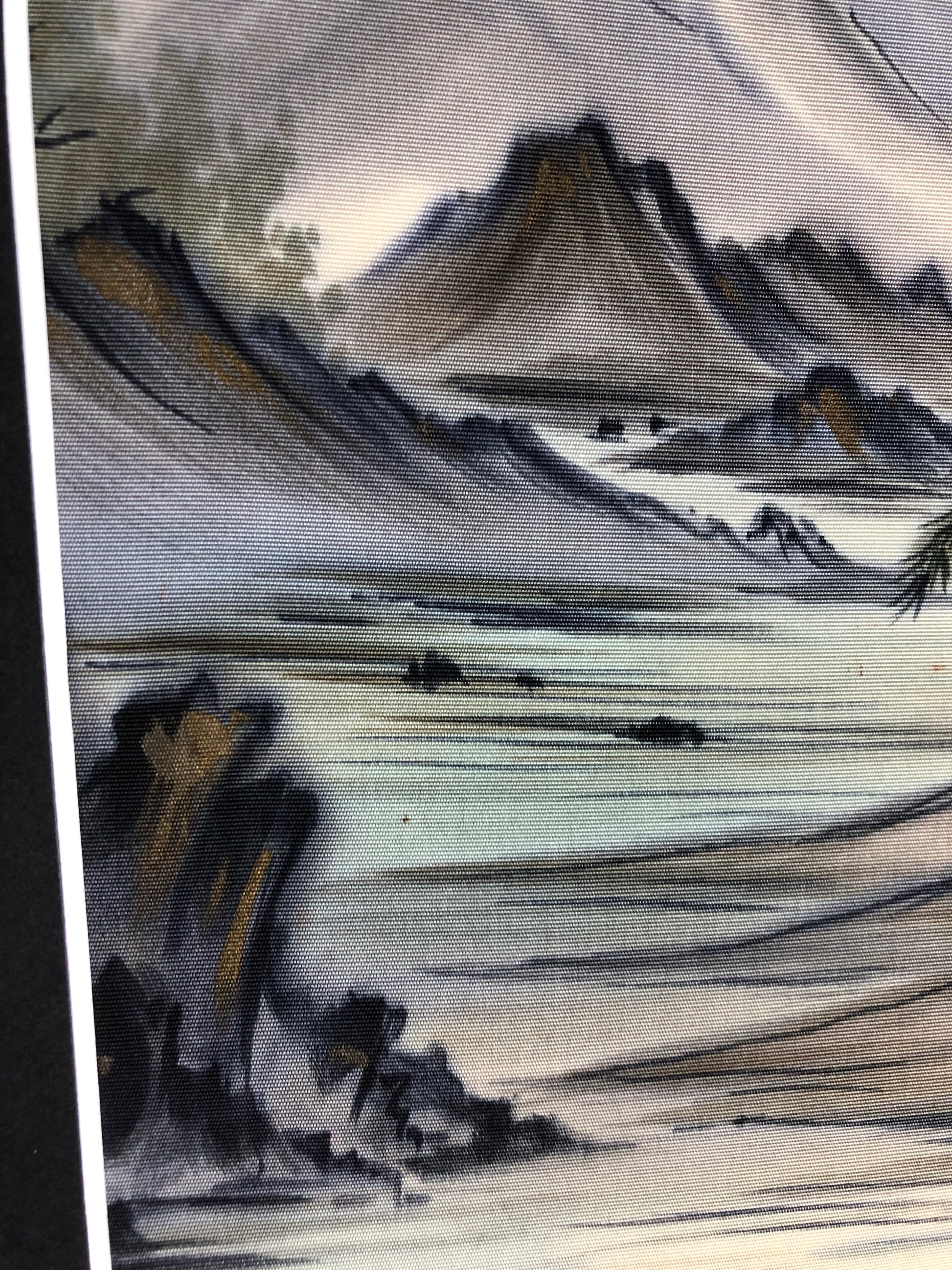 This Kimono Art exudes an air of refined dignity. Its palette and ambiance exquisitely meld, making it an ideal adornment for spaces such as studies, parlors, or entrances. It harmonizes exceptionally well with the Japandi interior style, fusing Japanese and Scandinavian elements.